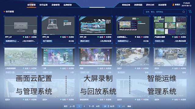 可对接录播、中控、监考、安防等设备和平台;支持ONVIF、RTSP、GB28181、RTMP等协议的不同品牌监控摄像头接入;支持H.264/H.265编码格式的网络流,支持4K超高清分辨率;可对接任意规模的LCD、LED、DLP等各种屏幕墙。